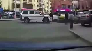 出租车被奔驰大G追尾,两司机上演WWE级对决,场面如功夫大片
