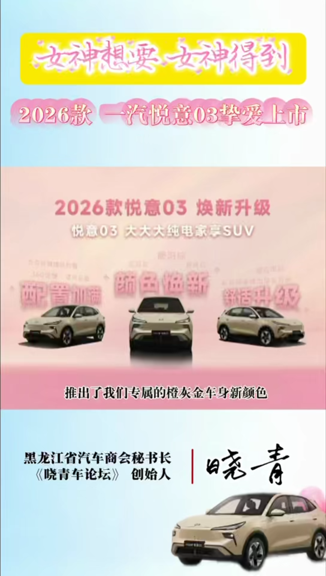 女神想要,女神得到2026款一汽悦意03 挚爱上市!