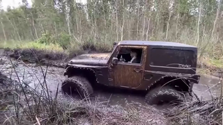 头一次见这么牛的越野车,强行通过烂泥路,司机这操作太粗暴了