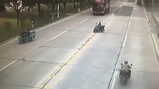 真把马路当自己家,满载的大货车为躲避摩托车侧翻
