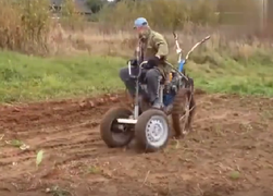 农村大爷改造的小型犁地机,坐在上面跟玩似的!