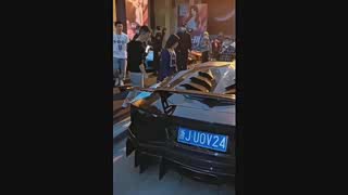 漂亮的萌妹妹开着最狠的兰博基尼出来购物, 旁边好多羡慕的眼光