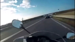 重机车高速上偶遇三千万的布加迪:摩托骑士趴下了还是没追上