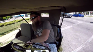 小年轻驾驶60年前的吉普车比开超跑还开心