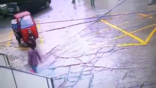 女子路边等车,当场被三轮车暗杀!监控拍下尴尬的一幕