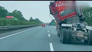 偶遇一辆“歪头”大货车, 这司机还敢继续开, 确定不会出事故吗