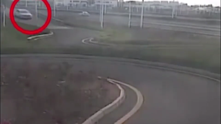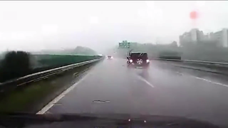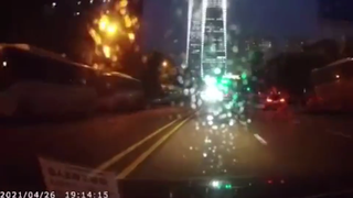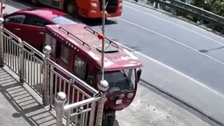雨天行车注意保持车距,你看一个急刹车就撞护栏了吧!