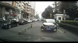 路遇逆行女司机, 一辆全新奔驰就这么残废了,监控拍下全过程
