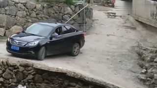 路太窄,女司机强行把车开进沟里,下车后的做法更是让我目瞪口呆