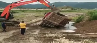 挖机救援渣土车,神操作说来就来,不是拍下谁信