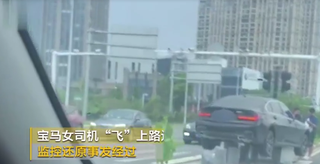 咋上去的?宝马女司机“飞”上路边石墩 监控还原事发经过