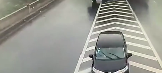 在高速乱停车,被心慈手软的大货车,怒甩怼了上去