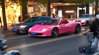 90后女孩开粉红色法拉利上街,可以说是一番风景!