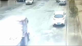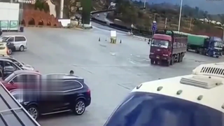 这是要飞货车超载“腾空而起”之后司机举动让人“冒”冷汗