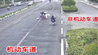 女子走在机动车道潇洒讲电话摩托车径直撞上,网友:马路不是你家
