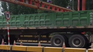 大货车测过限高杆,“剃了平头”后再也不怕蹭车顶了!