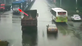 大货车司机真是好样的,不是监控拍下,根本不敢相信