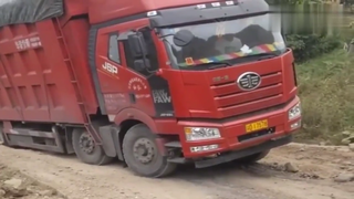 大货车走土路,轮子陷到土里出不去了,看着替司机着急!