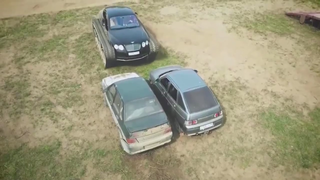 把宾利改装成坦克,可以从两台小车上碾压过去,看看宾利坦克多猛