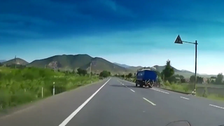 大货车左摇右摆,最后失控翻车