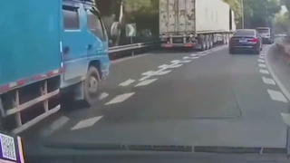 轿车高速变道急刹,大货车疾驰而来,监控拍下惊险瞬间