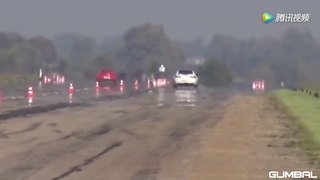 跑车强闯路障的后果有多惨?10秒后眼见为实