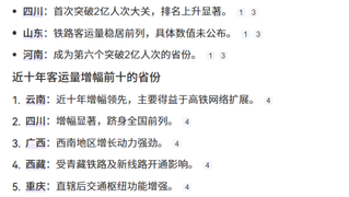 31省份铁路客运量增长排名
