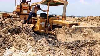 小松推土机陷在深泥里,折腾半天也没出来,司机都无语了