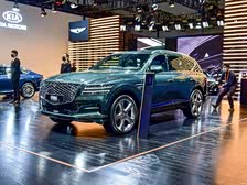 外观方面,GV80是一台非常运动的SUV车型,身上有大量的豪华细节。看到它的第一眼是车头上尺寸非常大的中网,以及尖尖的“下巴”;但是按照中国的惯例将蓝色牌照装在正前方,感觉特别不好看,而下部保险杠位置又有个
