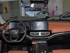 大蚂蚁,内饰按照家用SUV的标准设计,颜色搭配新颖又时尚,车厢内部通过采用大面积深棕色皮质面料,让前排空间显得更开阔。中控台上还加入仿碳纤维材质的面板和金属线条作为点缀,车厢内部的用料已经达到越级车的水平。中控台上配备的双12.3英寸中控显示屏是全系标准配置,液晶屏幕的UI界面所显示的画面很简单,除了可以显示剩余续航里程,还可以根据驾驶模式来切换不同场景。