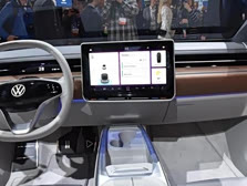 大众ID.Space Vizzion。在内饰方面,迎面而来的就是浓浓的科技感。该车不仅配备了大尺寸的液晶中控屏,而且还配备了液晶仪表以及造型精致的档杆,科技气息十分浓烈。至于用料方面,大面积地采用了软质包裹,看上去豪