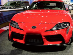 丰田Supra。前脸加入了菜刀状的黑色大灯,三分式的进气加散热开口的组合,并配有黑色的下唇,展现出了极强的攻击性。车身通过大量动感流畅的线条勾勒,双隐藏式的A柱让它的风挡与战斗机如出一辙。18英寸双色双五辐轮圈,搭配着红色的制动卡钳和打孔式刹车盘,再加上两个无边框车门、宽厚的翼子板,让整车更有性能车的感觉。溜背式的车顶与车尾密切相连,在车尾自然形成了一个鸭尾式的扰流板,再搭配着黑色的后扩散器和双边双出的炮筒式排气,让整车的运动感更加炸裂。