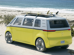 大众DI.BUZZ,在外观方面看起来和大众燃油车还是有很大的区别,从我们看到的DI.BUZZ曝光图中,整车采用了很简约的设计,前脸采用了封闭式设计,车头整体比较简短,车标镶嵌在引擎盖上,修长的大灯在引擎盖双侧,包围整体看起来比较大气,双侧带有LED日间行车灯,同时下包围带有孔式散气口,给人一种简约而不简单的感觉。车身整体采用了双色设计,上下颜色均不同,等上市时候,可能会有不同的颜色选择,车顶配有银色行李架,也更好地盛放物品,侧推拉门也是MPV的经典之作,对于上下车时,都是非常方便的,配备了双色封闭式轮毂圈,给人一种跨时代的感觉。
