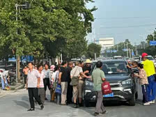 在十字路口险些被汽车撞上,路口刚好有警察,看他是怎么处理的