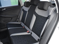 捷达VS5。座椅方面,采用皮质材料包裹覆盖,主驾座椅支持电控调节,并且提供了手动腰部支撑调节,很大的程度上缓解了驾驶员的疲劳感。后排座椅坐垫长度适中,软硬合适,支撑性和包裹性非常不错,乘坐起来更加舒服。做工和用料方面,大面积采用了搪塑工艺,软质皮革包裹,中控台加入了压花设计,美感不错。