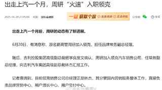 周钘履历圆满了,既有国企履历,后来从上汽去了小米,有了造车新势力的履历,现在又去了头部私企,再干两年就大圆满了。