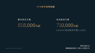 蔚来ET9地平线特别版的价格出来了,整车购买81.8万元,租用电池只需要71万元。 就想知道,蔚来ET9地平线特别版有什么不一样的地方?有钱人真的有那么多吗?想买的请举一下手!