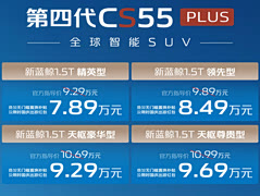 燃油车也有智能驾驶、泊车辅助,顶配成交也不到十万,快来了解一下! 当智能汽车成为年轻人的刚需,在选择燃油车或电动车之间不再纠结,长安第四代CS55PLUS给了完整解决方案。 近日,长安汽车发布第四代CS55PLUS的上市价格,新车共推出4个版型,指导价9.29——10.99万元,同步推出多重限时购车权益及国庆出游红包等优惠后,实际成交价格7.89万——9.69万元,即使顶配车型的价格也不到十万元。 第四代CS55PLUS迎来智能化方面的全面升级,两款高配车型搭载天枢智驾功能,提供高速、快速路的智能辅助驾驶系统,以及自动辅助泊车功能。此外,在智能语音交互方面也进行全面升级,360全景影像、全景天窗成为标配,多方面智能进化使得第四代CS55PLUS成为“10万以内唯一”行泊一体、自动换道超车的智能SUV。 另外,第四代CS55PLUS标配最新500Bar新蓝鲸超高压直喷发动机,配合7DCT变速箱达成长续航的成绩,以51升油箱,续航超1000公里的水平,成为当前国产燃油SUV当中“最能打”的车型。
