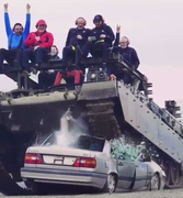 外国土豪用坦克压汽车玩,感觉找到了新的商机