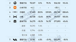 鸿蒙智行全部算一起有点欺负其他品牌了,问界撑起了一大半,考虑到它的平均售价,含金量是真高。零跑虽然卖得多,但单车利润不高。蔚来汽车的蔚来复苏了,但乐道下滑了。理想是新势力里,同比下滑最多的。