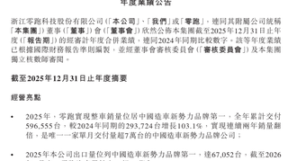 【零跑汽车:2025年净利润5.4亿元,上年同期亏损28.2亿元】 零跑汽车公告,2025年收入为人民币647.3亿元,上年同期人民币321.6亿元。2025年本公司权益持有人应占净利润为人民币5.4亿元,上年同期人民币亏损28.2亿元。
