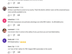 有个新闻不知道你们注意到没有,比亚迪进入欧洲市场以后,关注度挺高的,德国主流电视台DW,还做了比亚迪Atto3(国内叫元Plus)的产品测试传播,主要是针对刀片电池的安全性、还有整车的设计与驾驶体验,评价颇高[并不简单]看评论能够发现,欧洲部分消费者认为比亚迪汽车是具有更高价值、更安全、更舒适的选择,价值就是产品力了,安全应该是得益于刀片电池的应用,至于舒适,那就是配置给力了,不扣扣搜搜的。对于中国汽车品牌去海外赚钱,九哥一向是非常支持的,新能源这个节点是中国汽车品牌唯一可以弯道超车的,一定要抓住机会,把有产品力的产品带出去,赚一点欧元回来,也能吸取欧美先进的汽车研发/制造上的经验。对了,元Plus国内卖的也非常好,去年10-12月单车型销量都突破了2w。