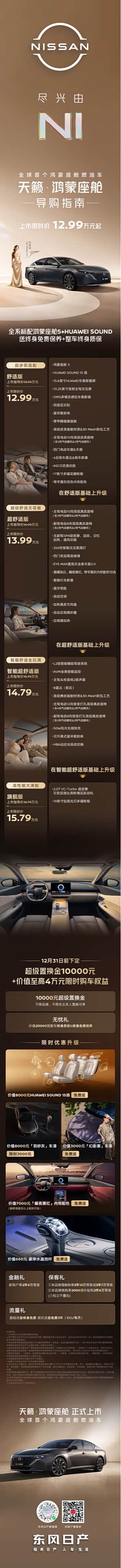 #2025广州车展#合资转型看东风日产,天籁鸿蒙座舱上市,12.99万起炸场,把鸿蒙座舱生态直接拉到12万级~#广州车展潮这看# 全系标配满血鸿蒙座舱5+HUAWEL SOUND音响,还有行业首创的终身整车质保+终身免费保养,配置、售后全看齐新势力,和同价车型形成“同价不同智”的差距。 东风日产以合资最快转型速度给出“标准答案”,让燃油车也能踩进智能化时代,这波诚意拉满!