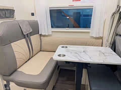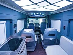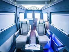康派斯奔驰斯宾特商旅房车:整车长宽高尺寸为为5999×2020×2800mm,动力方面,搭载3.0T V6柴油发动机,最大功率148kW,峰值扭矩430N·m,传动系统方面则匹配7AT变速箱。驱动形式为全时四驱 4×4。内饰布局设计方面,受限于车体长度尺寸,乘客区是2张航空按摩座椅,后面则是房车基础的厨卫设施。