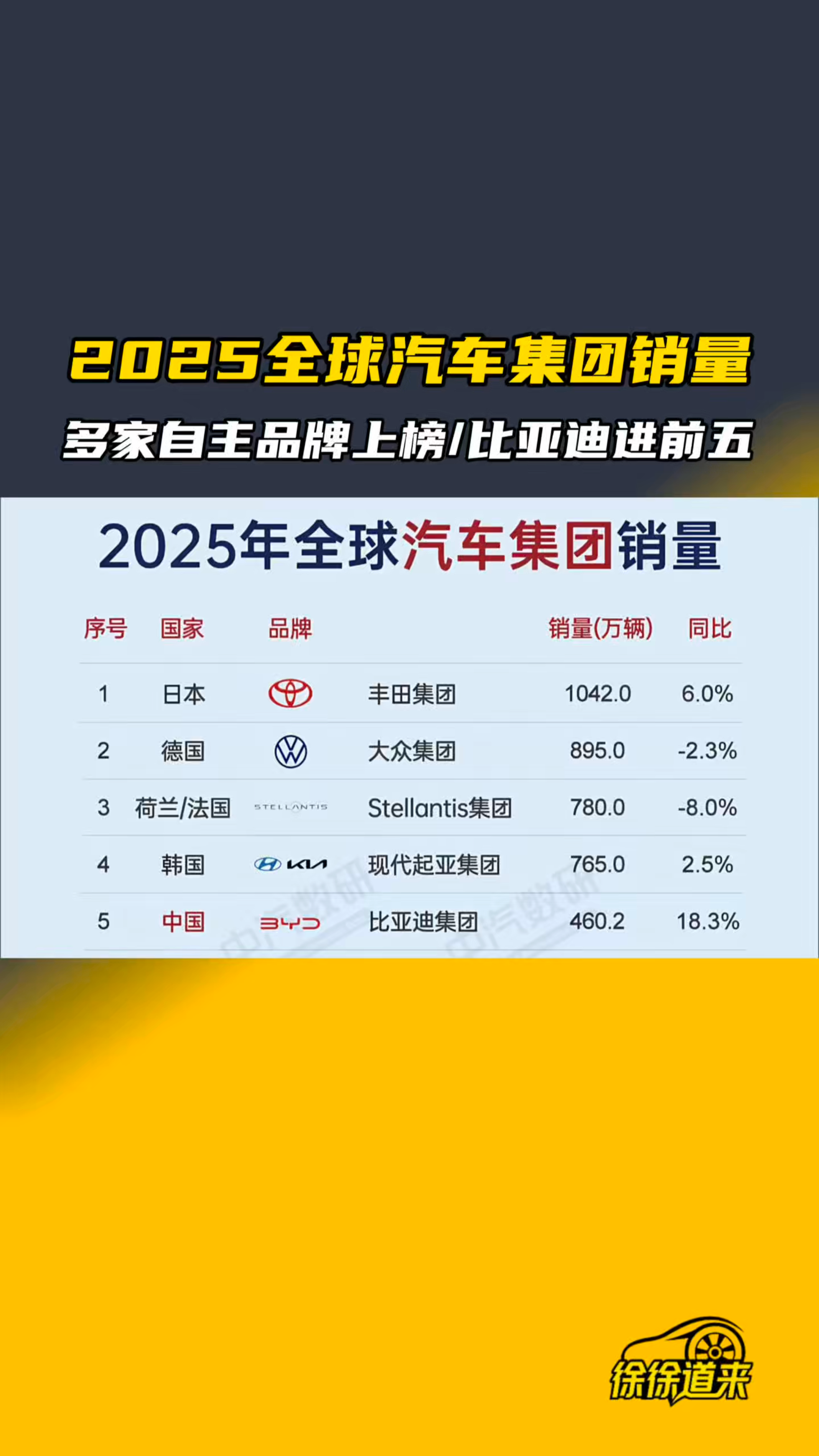 2025全球车企销量榜出炉:中国品牌杀进前五