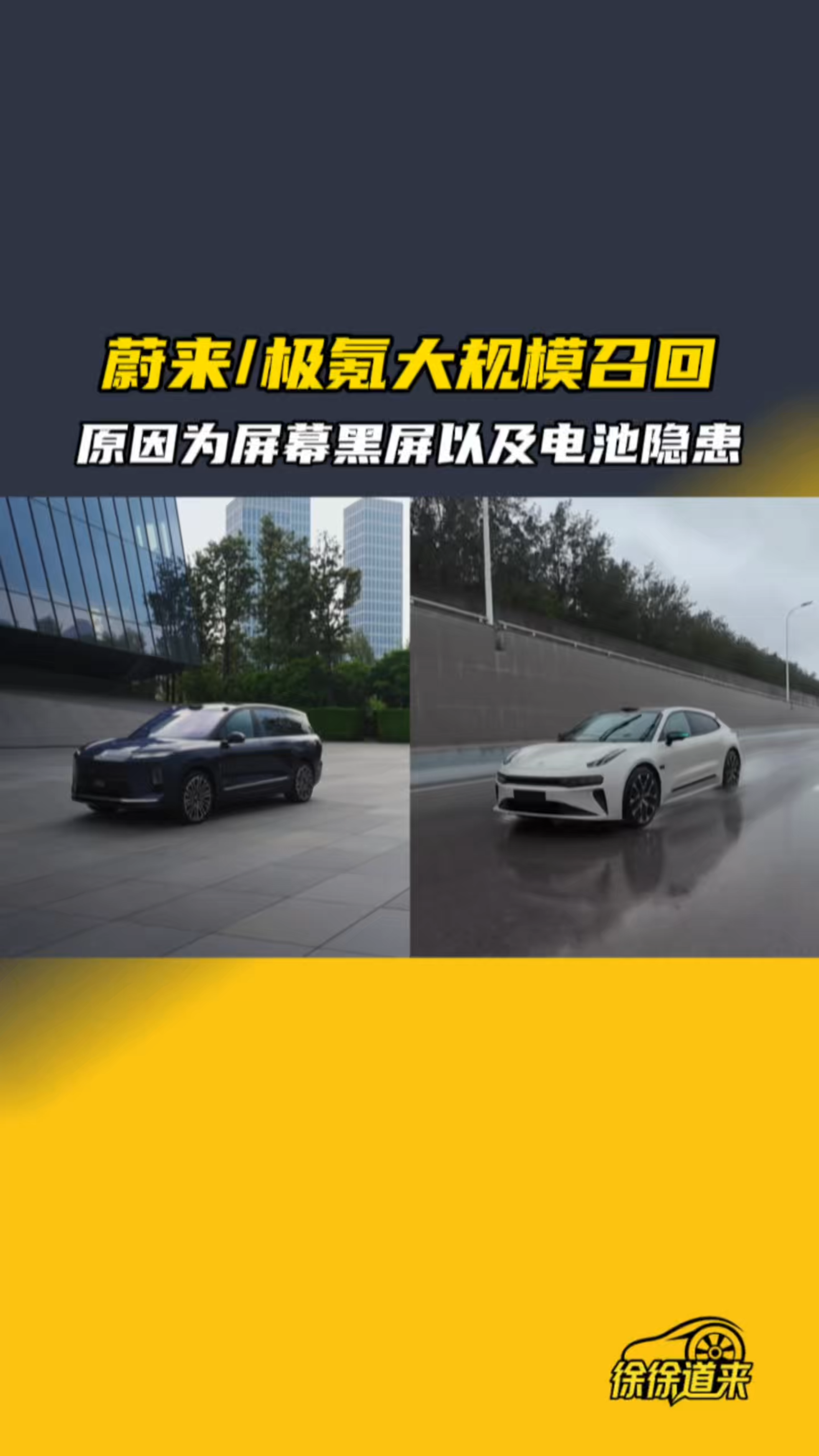 蔚来、极氪大规模召回,原因为屏幕黑屏、电池隐患!