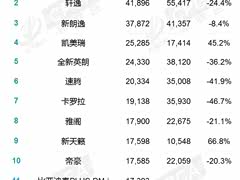 10月销量排行榜出炉,小型轿车和B级轿车大受欢迎