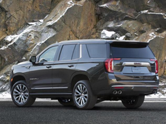 GMC Yukon。直观的颜值方面,GMC Yukon的车头十分方正,巨大的镀铬格栅搭配着矩阵式颗粒感中网,红色的“GMC”车标被放置在了格栅中央,十分醒目。两侧巨大的车灯融入了三颗直立排列的LED光源和L形日行灯,再配合着下方直立式的雾灯,科技感与时俱进。粗犷的前包围加入了银色的前护板和两侧的J形银色饰板,凸显出了美式豪华SUV的魁梧感。车身高大魁梧,隐藏式的中柱,悬浮式的尾窗,大量镀铬装饰条的点缀,提升了整车的精致感。