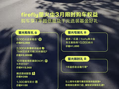 前段时间特斯拉先给了一个7年超低息的方案,不过是在4月才开始,3月份依然是5年0息,而这次firefly萤火虫更超前,租电798的基础上,它的3月限时购车权益就是7年超低息,还加上3,000的选装基金,2,000购置税补贴或7kW交流家充桩。 现在应该是买新能源的最好窗口期,因为电池原材料碳酸锂期货涨价比较多,可以预测到价格战应该是不会持续太久的,像现阶段firefly萤火虫给出的权益还算不错。