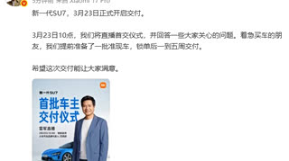 雷军这次对交付是真上心了。 新一代SU7刚发布没几天,他就宣布3月23号上午10点直播首交仪式,还准备了“准现车”,锁单后最快一周、最慢五周就能开走。这明显是在回应上一代SU7交车慢被吐槽的痛点,他自己在发布会上也承认了,说这次提前两个月备货,就为让大家早点提车。 车是3月19号上市的,起售价21.99万,比预售价降了一万,但比老款还是涨了四千。升级的地方官方称超过100项,续航最长能到900多公里。 现在就看实际交付能不能像说的那么顺了。对于急着用车的朋友来说,有准现车可选,等待时间明确,这比啥都实在。 希望这次小米别让车主们再等得心焦了。